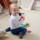 - Play gyms. For our little ones, there’s nothing better than the opportunity to naturally develop and discover the world. Another useful option for a gift is a baby play gym. They are created with a special construction with various objects hanging on them. Compared to mobiles, they offer a closer look for a baby and greater diversity. In most cases, the toys are supplemented with a mat, so it’s possible to place them, for instance, on a bed or floor. The smallest children can just lie and follow the toys with their eyes. Later, they will be able to touch them. While getting older, little ones will sit and play with hanging objects. The latest can be replaced if you wish.